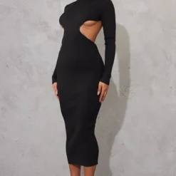 Robe Corset Mi-longue En Similicuir Noir à Bonnets Et Dos Nu