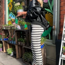 Robe Bustier Longue En Maille Tricot Douce Noir & Blanc à Rayures