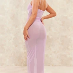 Robe Longue En Mesh Transparent Lilas à Bretelles Et Barre En V Plongeante
