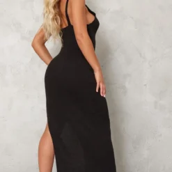 Robe Longue En Mesh Transparent Gris Pierre à Bretelles Et Barre En V Plongeante