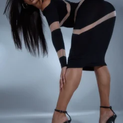 Robe En Maille Tricot Transparente Noire à Parties Contrastantes