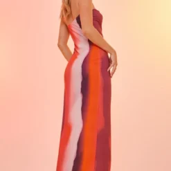 Robe Longue Découpée En Mousseline De Soie Marron à Imprimé Abstrait Et Col Bardot