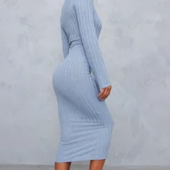 Logic Robe Mi-longue Côtelée Bleu Acier Basique à Manches Longues