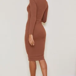 Logic Robe Mi-longue Côtelée Chocolat Basique à Manches Longues