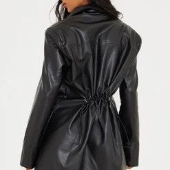 Robe Blazer Noire Effet Lin Oversize à Manches Courtes Et Double Boutonnière