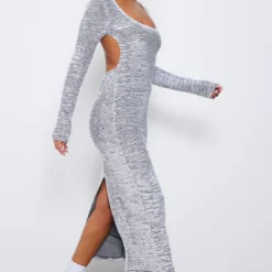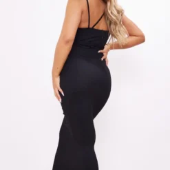 Robe Longue En Maille Côtelée Structurée Noire à Contours Et Dos Nu Arrondi