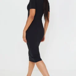 Robe Longue Côtelée Structurée Noire Détail Contours à Dos Nageur