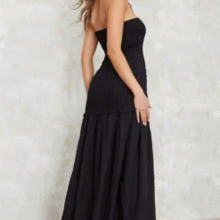 Robe Longue Bustier Moulante Noire Découpée Froncée Sur Le Côté