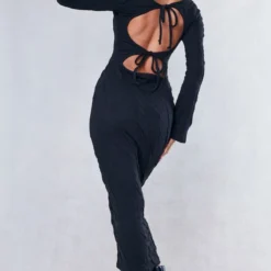 Robe Longue Moulante Noire à Col Bénitier Avec Noeud Et Dos Ouvert