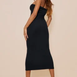 Robe Longue Très Moulante Froncée Noire à Décolleté Et épaules Découpées