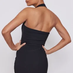 Robe Moulante Douce Noire Detail Buste à Bretelles Et Dos Nu Noué
