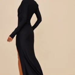Robe Longue Moulante Gris Anthracite à Dos Nageur Et Découpes Multiples