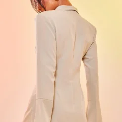 Robe Blazer Oversier Kaki Sauge à Fines Rayures Et Double Boutonnière