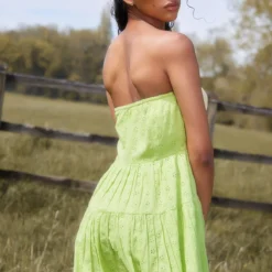 Robe Bustier Moulante Effet Lin Vert Citron à Lacets Sur Les Côtés