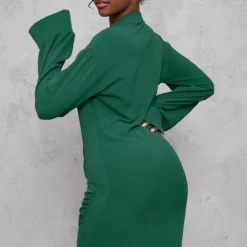 Robe Droite En Coton Vert Forêt à étages Et Manches Longues Détail Dos Noué