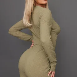 Robe Corset Moulante En Effet Lin Vert Sauge à Dos Nu Et Liens Noués